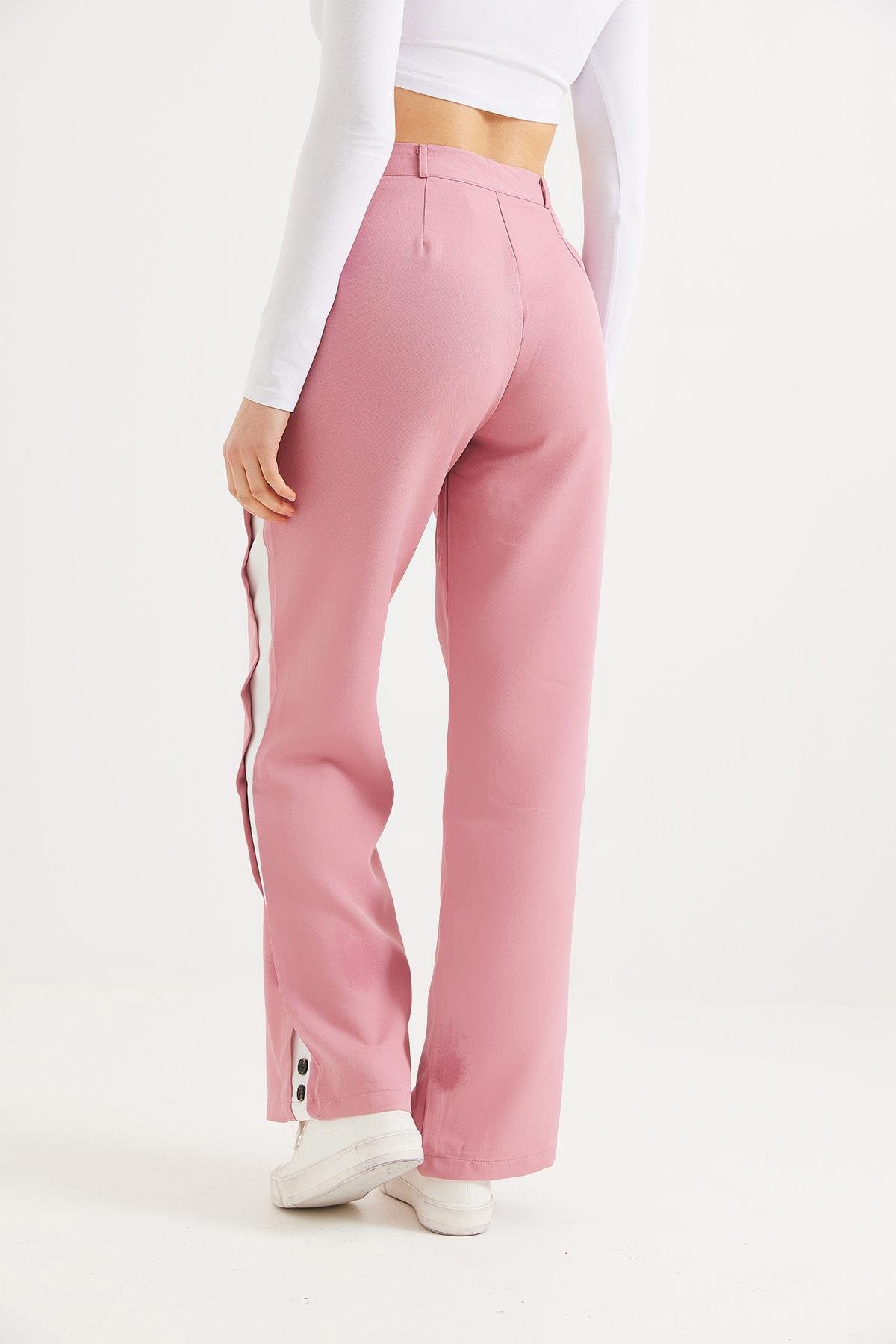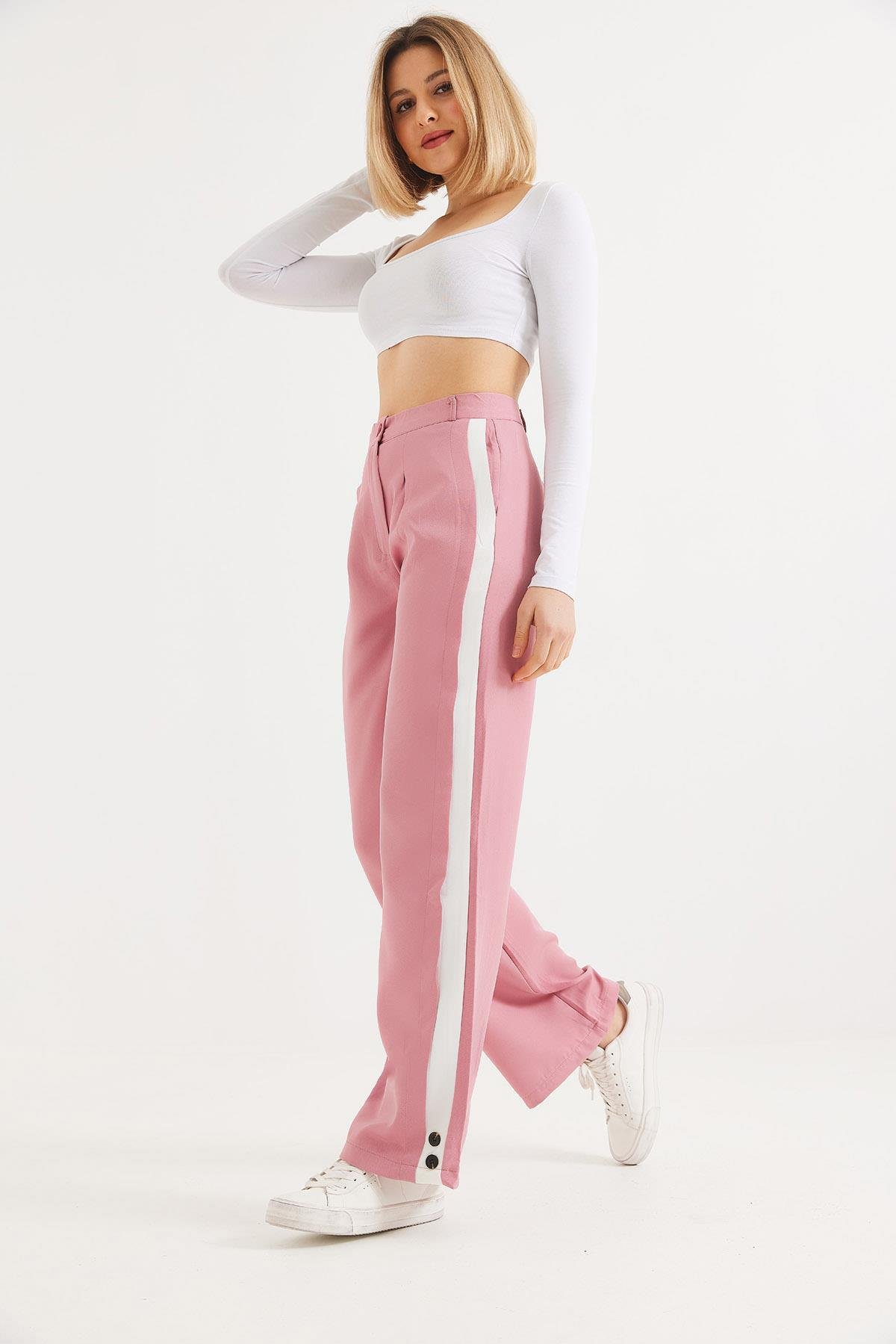 Yanları Şeritli Bol Paça Pantolon Pembe (250501PNTLXPMB)