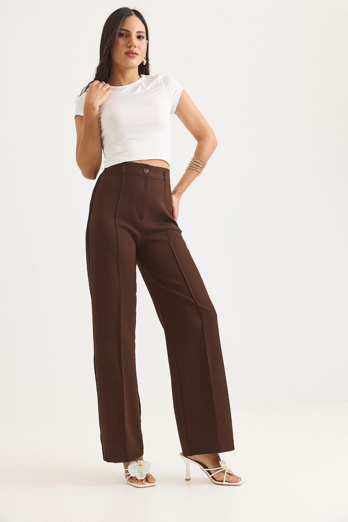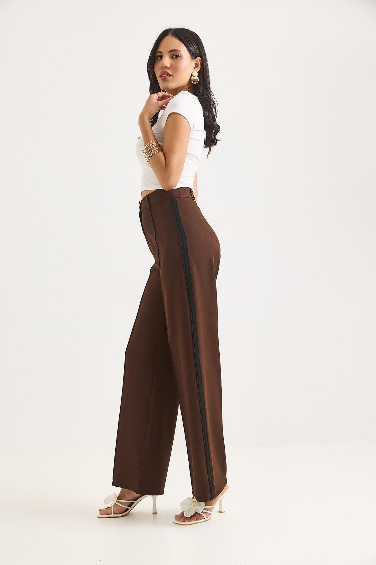 Yanları Şeritli Yüksek Bel Bol Paça Pantolon Kahverengi (251115PNTXKHV)