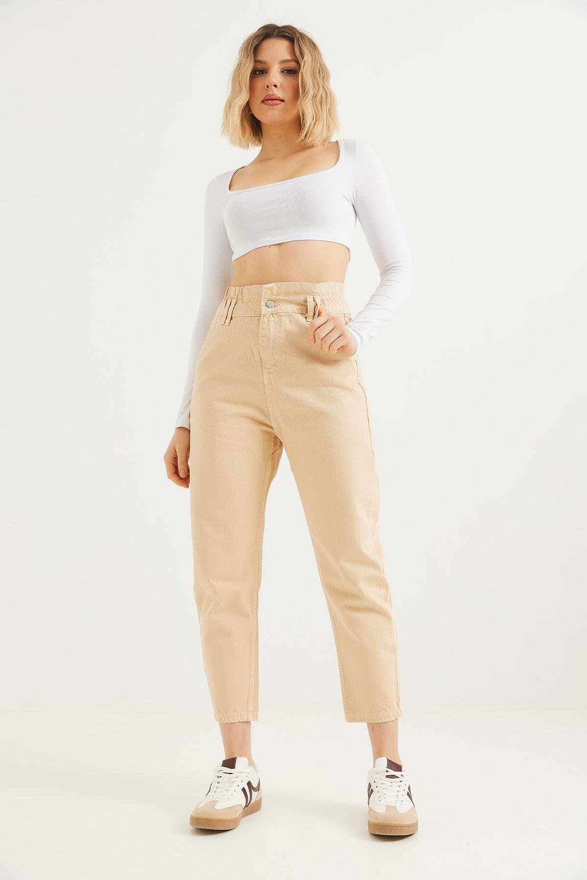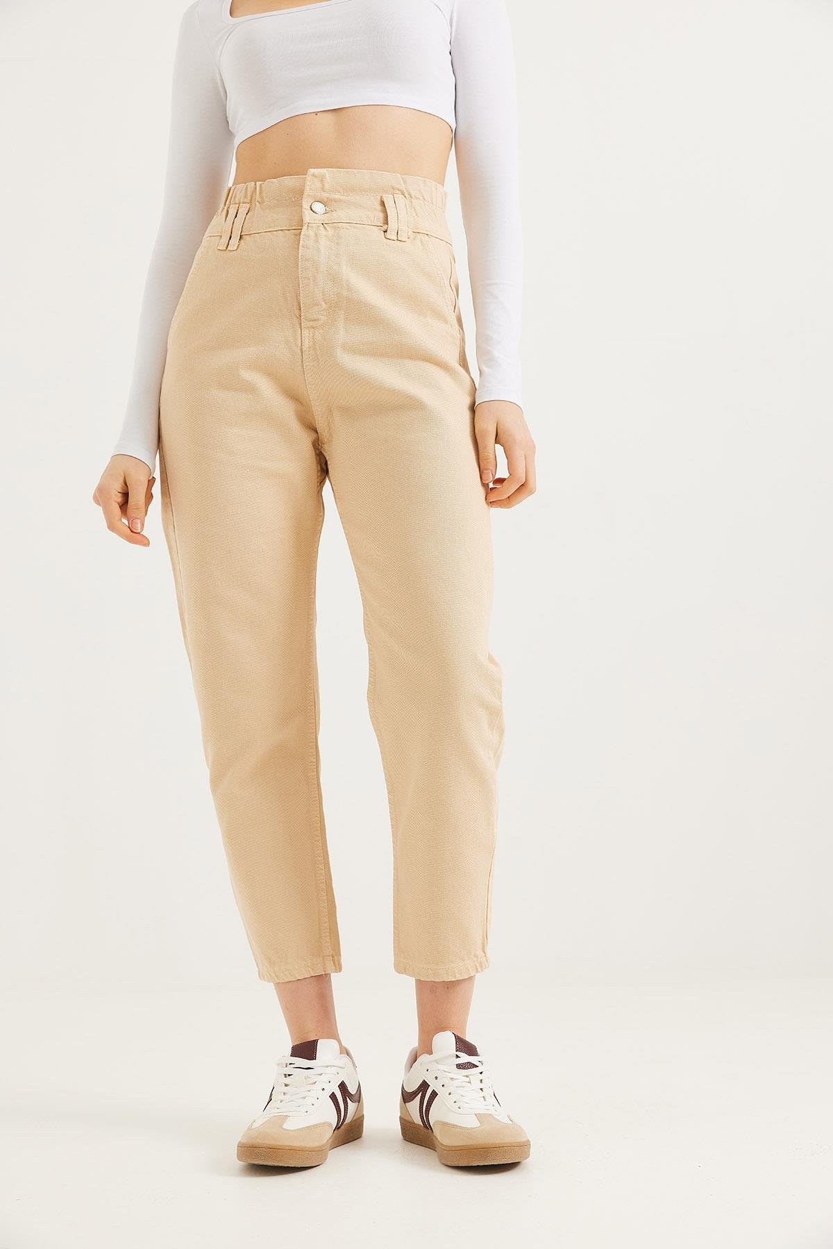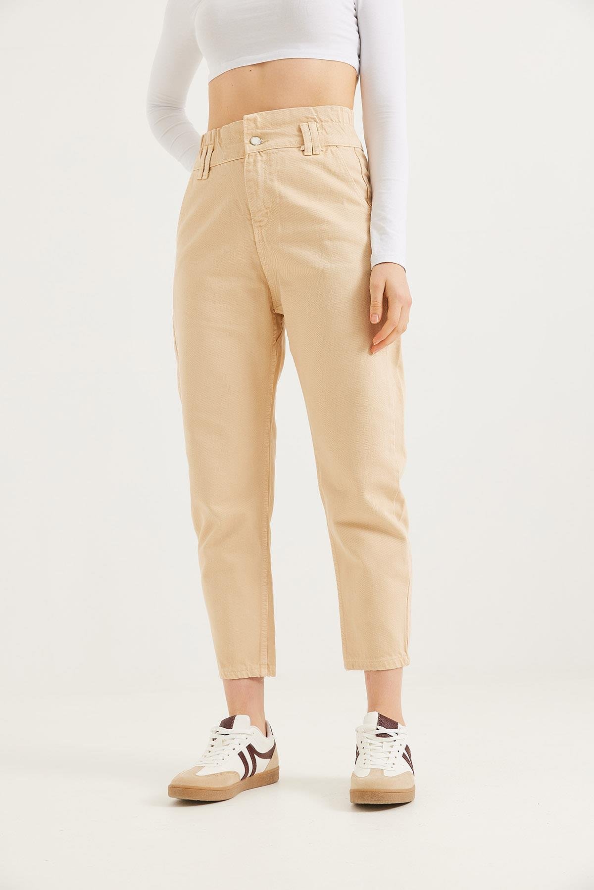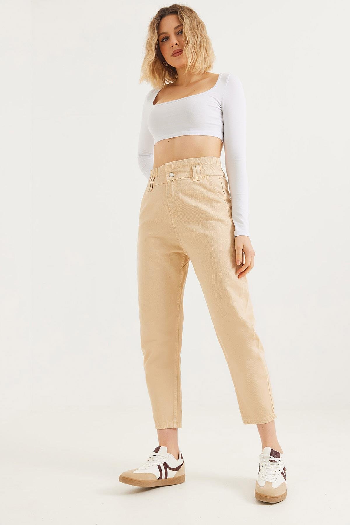Yüksek Bel Bol Kesim Pantolon Bej (250513PNTXBEJ)