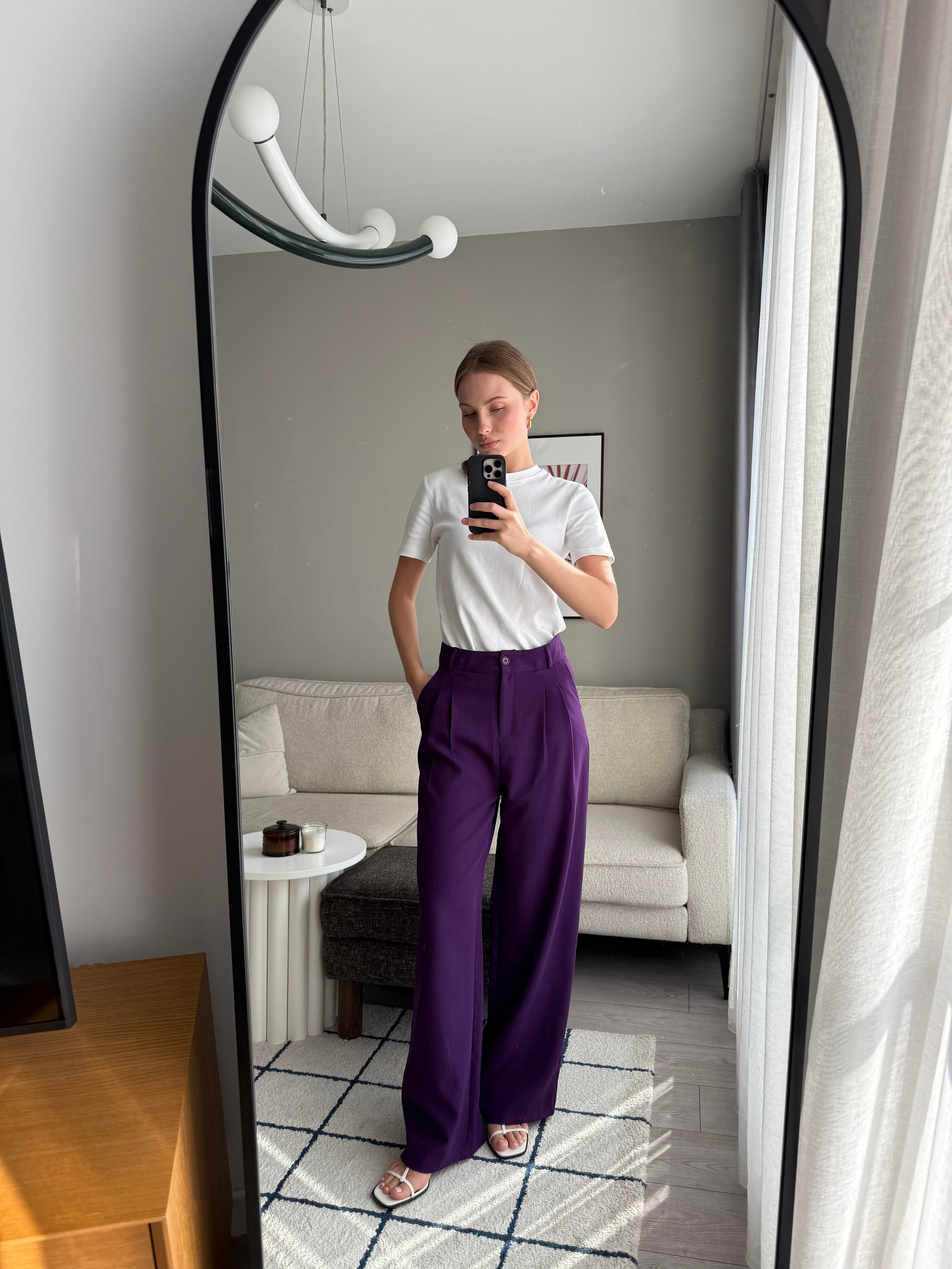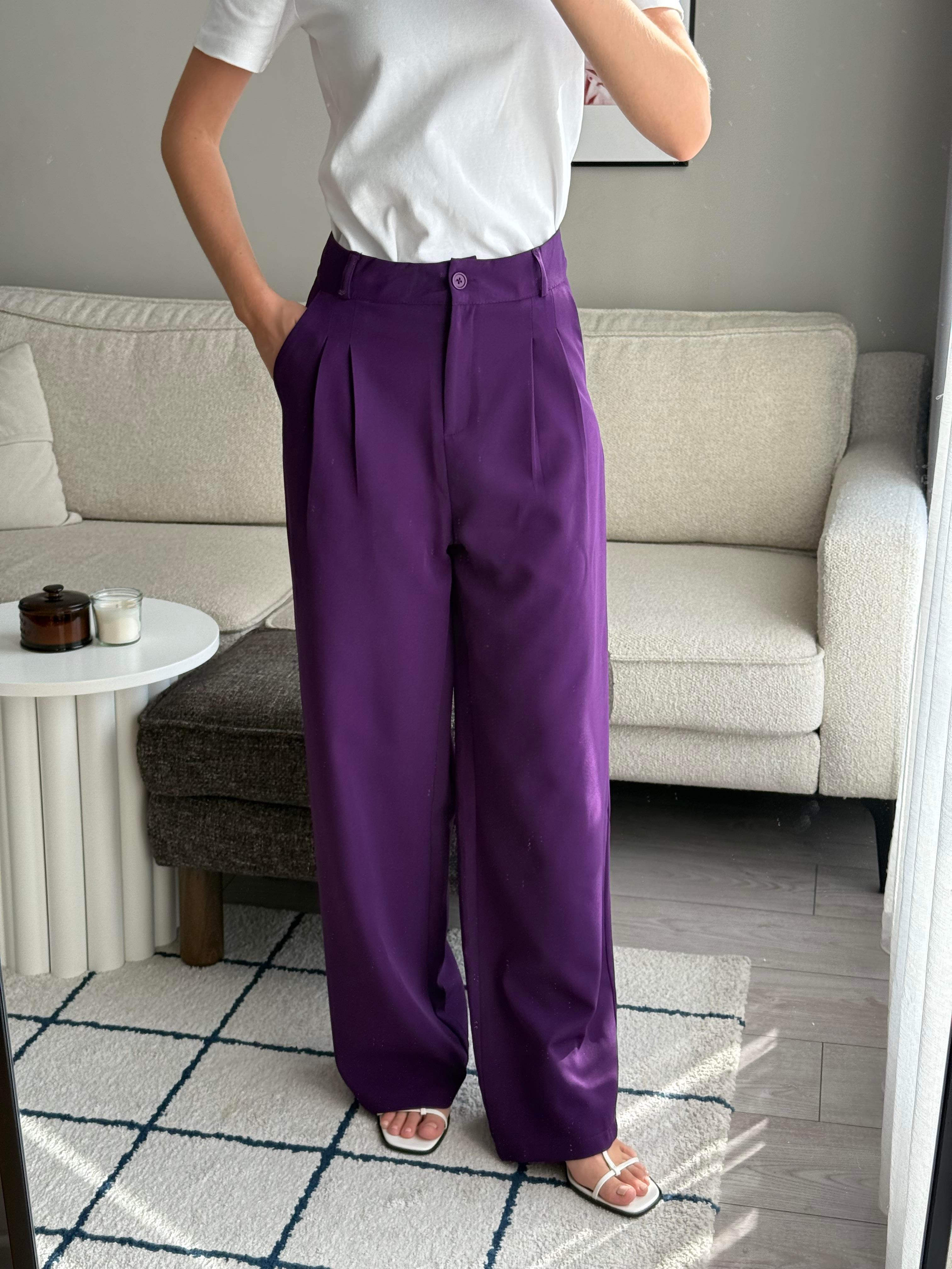Yüksek Bel Bol Paça Pantalon Mor (500125PNTXMOR)