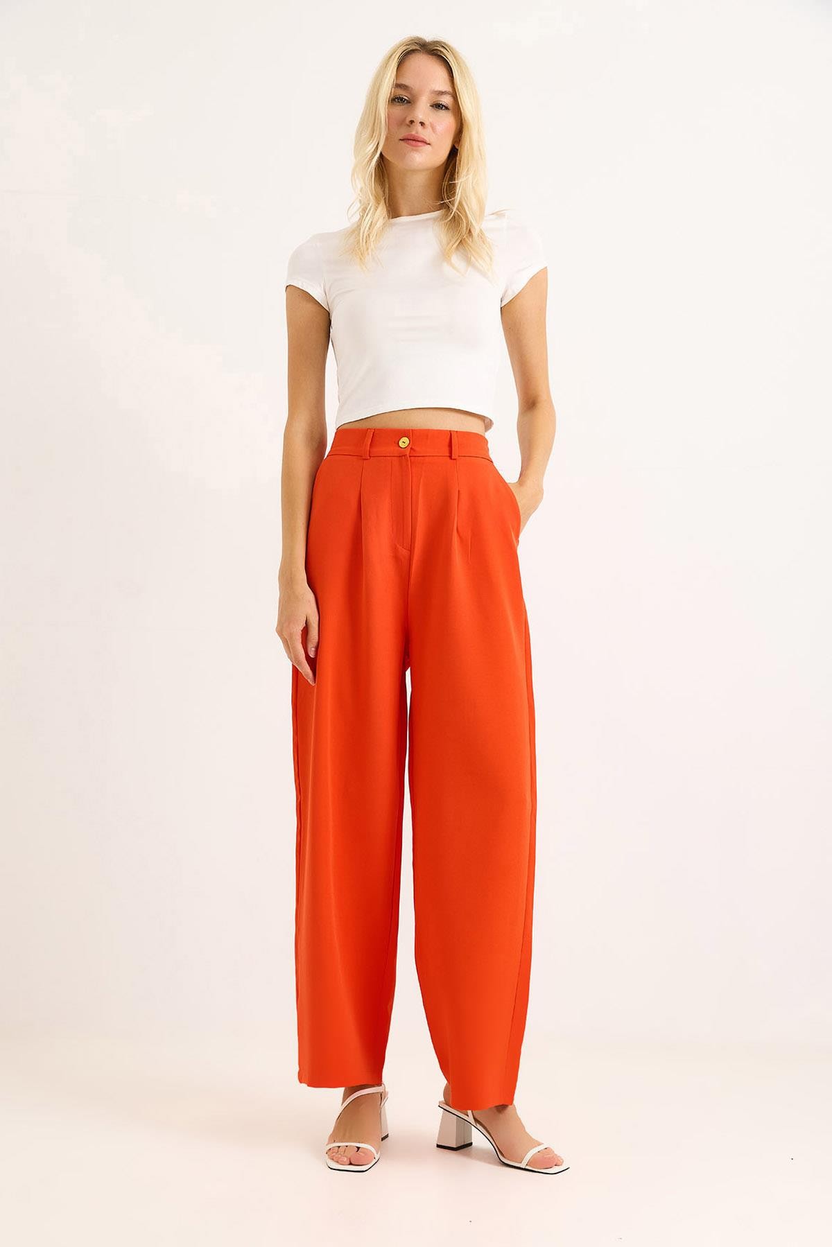 Yüksek Bel Bol Paça Pantalon Turuncu (500125PNTXTRN)