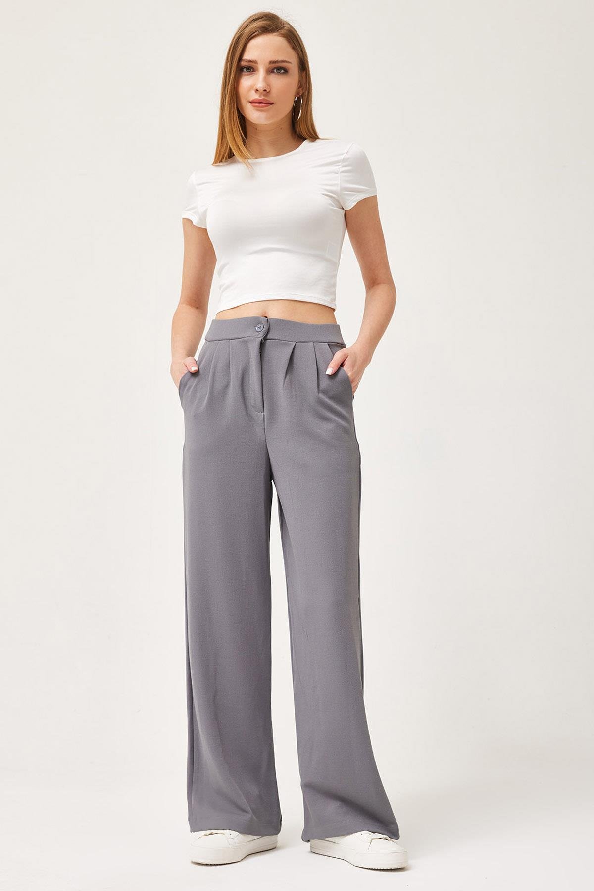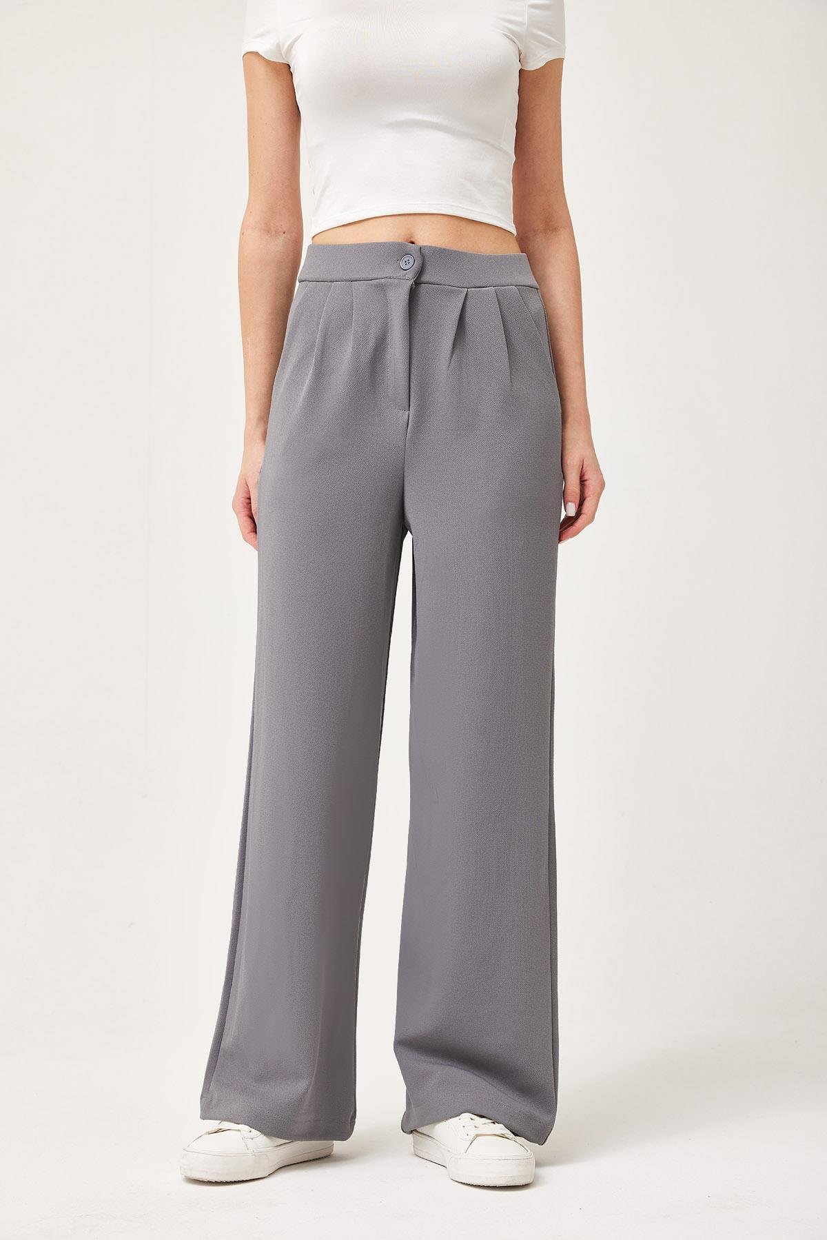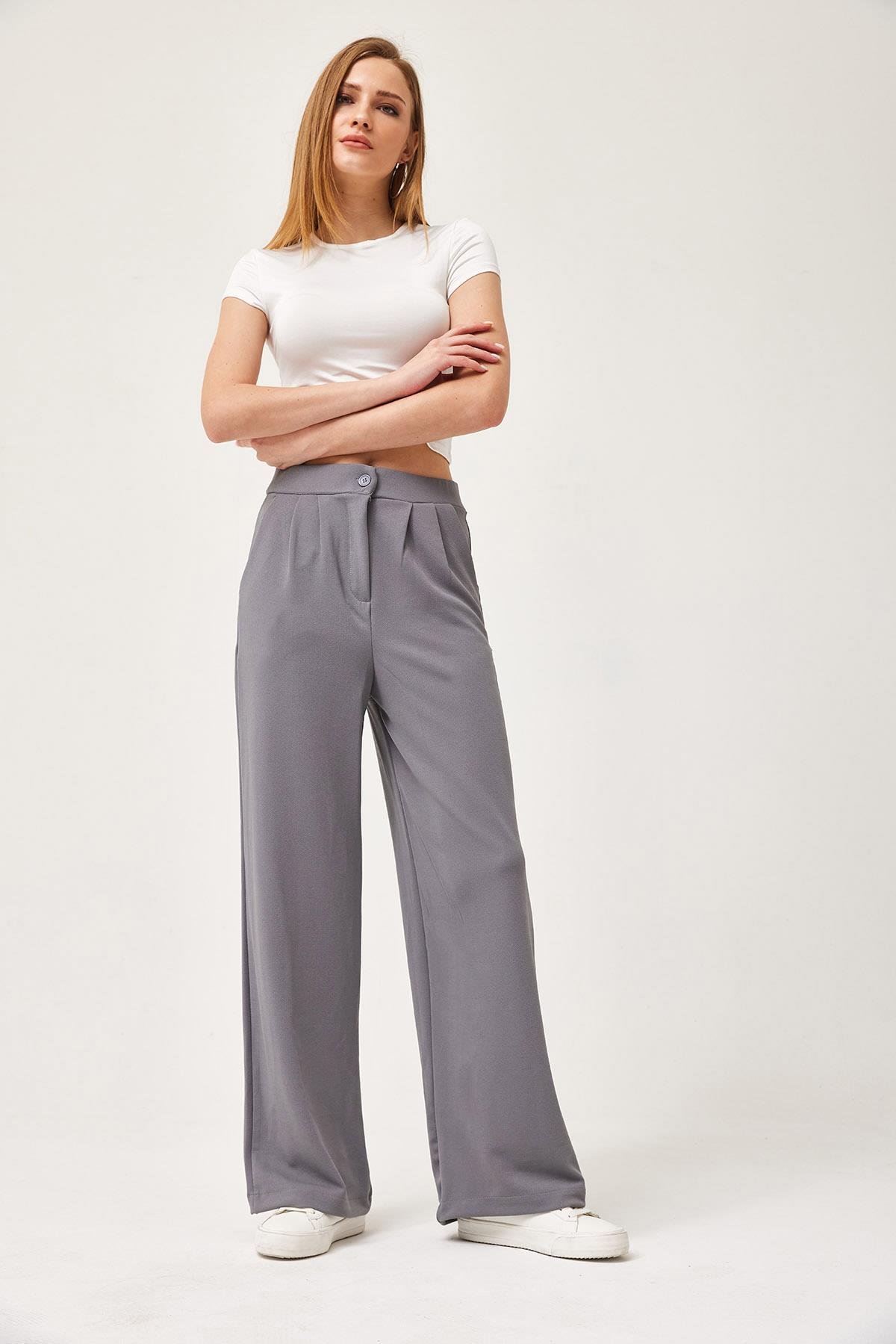 Yüksek Bel Cepli Palazzo Pantolon Gri (250335PNTXGRİ)