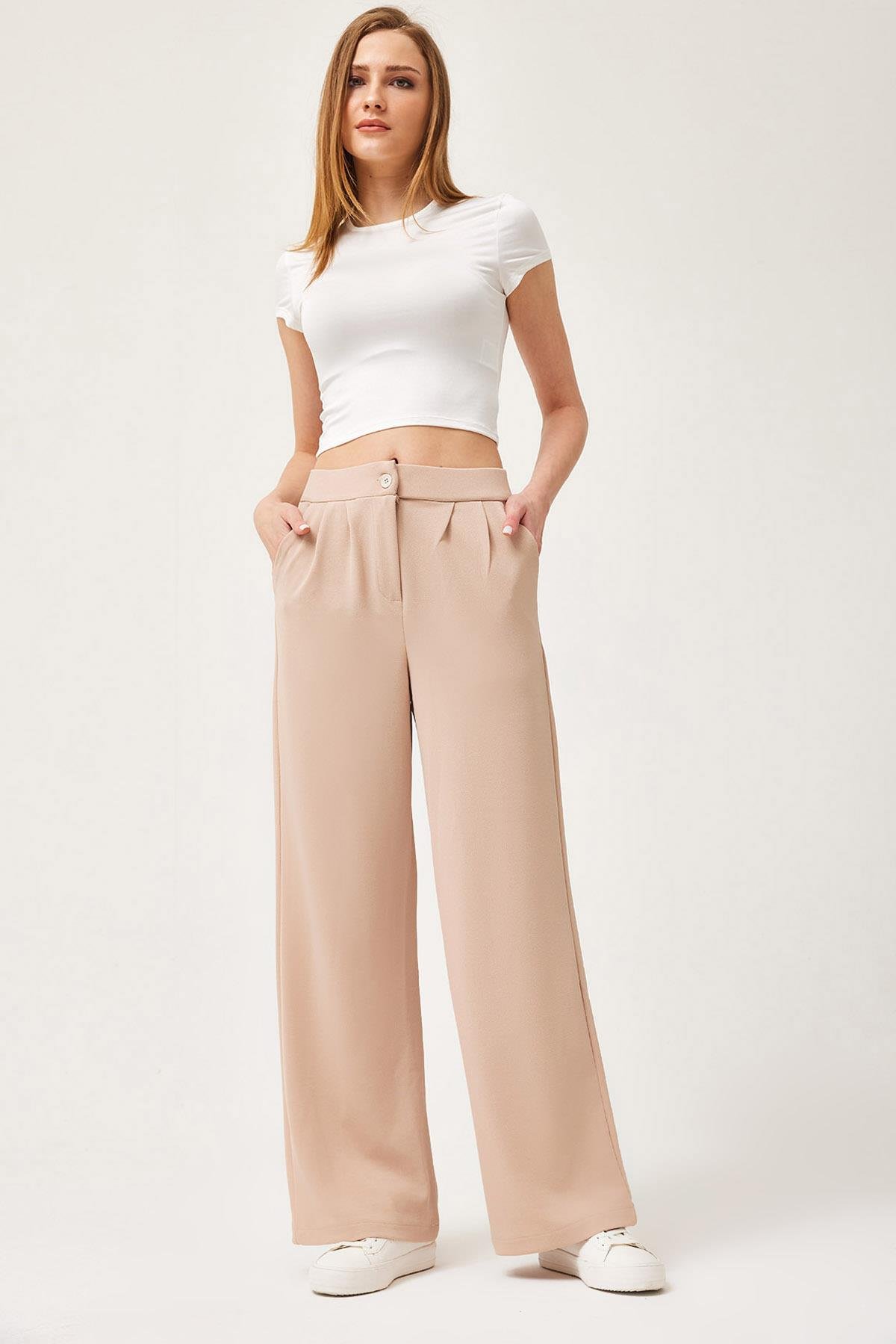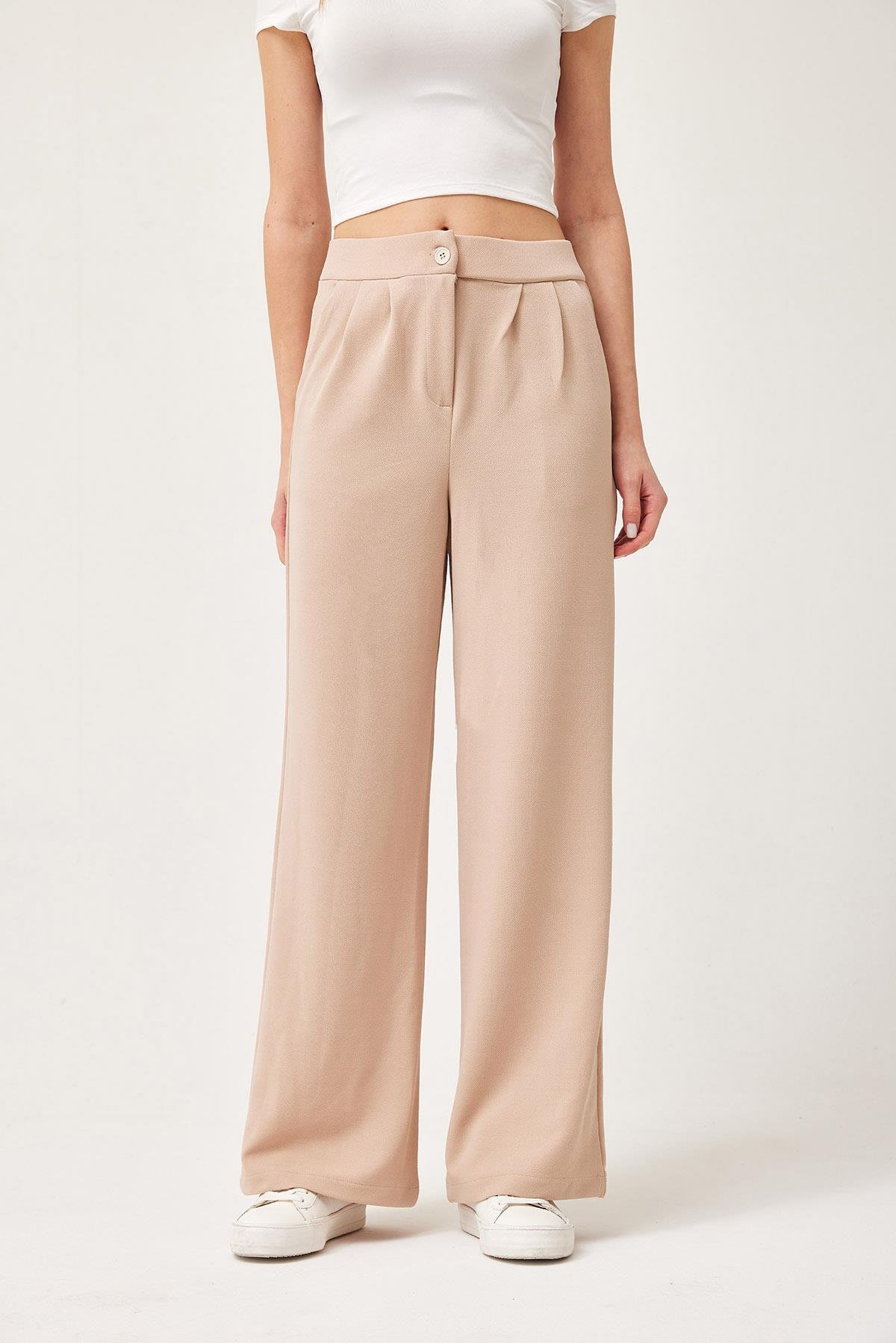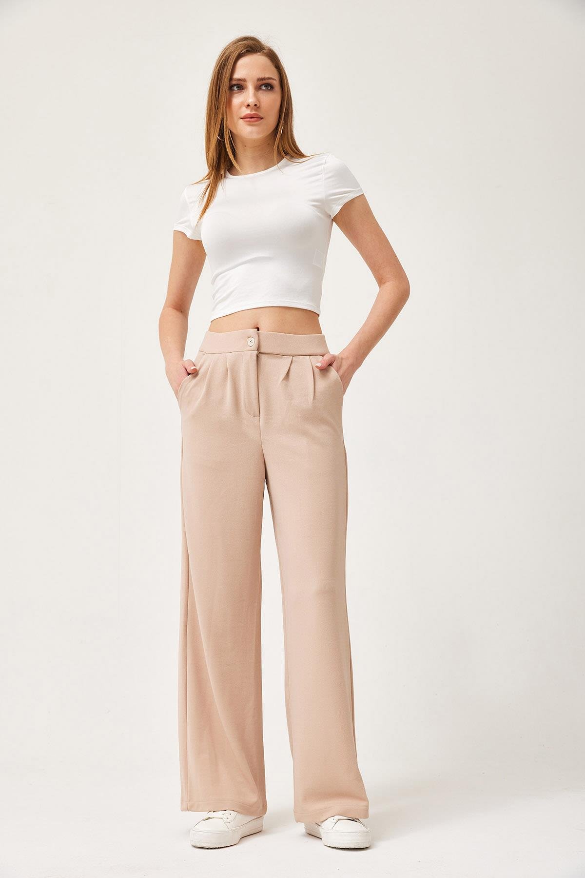 Yüksek Bel Cepli Palazzo Pantolon Krem (250335PNTXKRM)