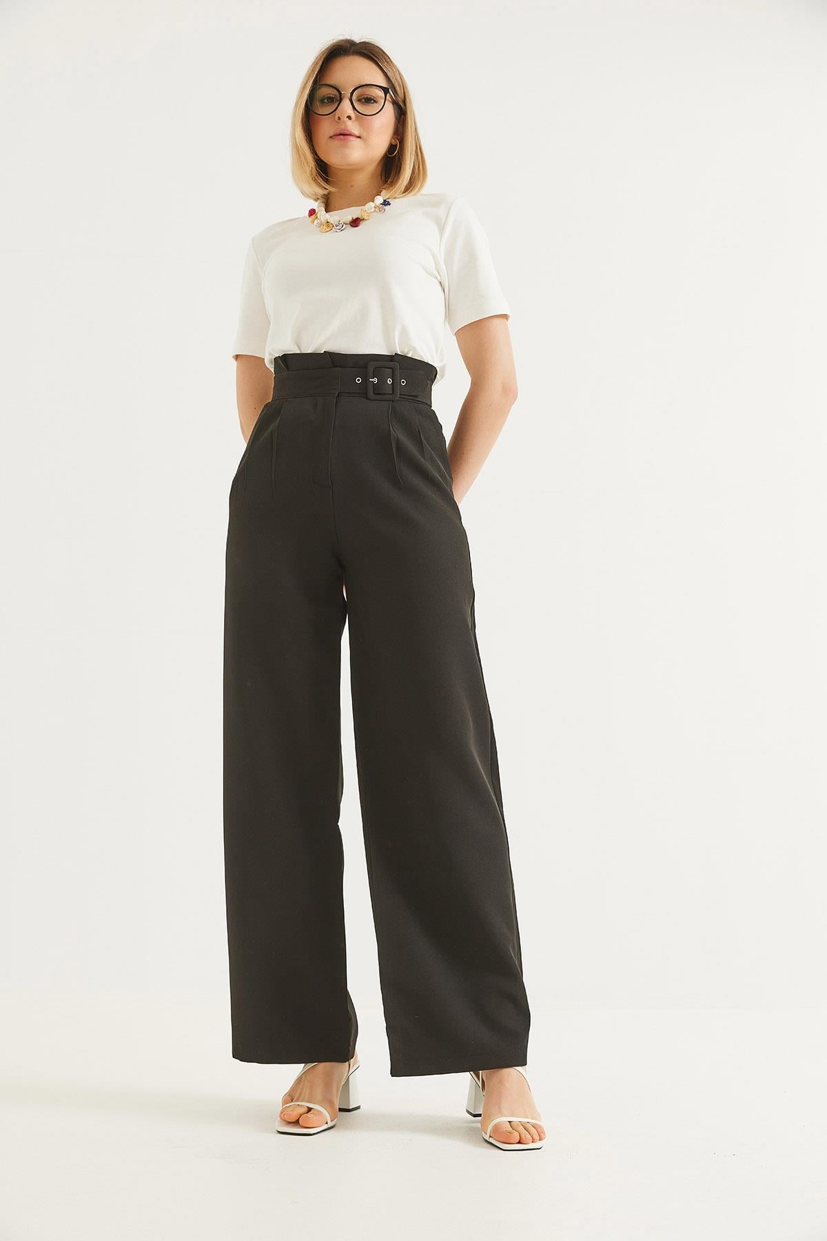 Yüksek Bel Kemerli Bol Paça Pantolon Siyah (250521PNTXSYH)