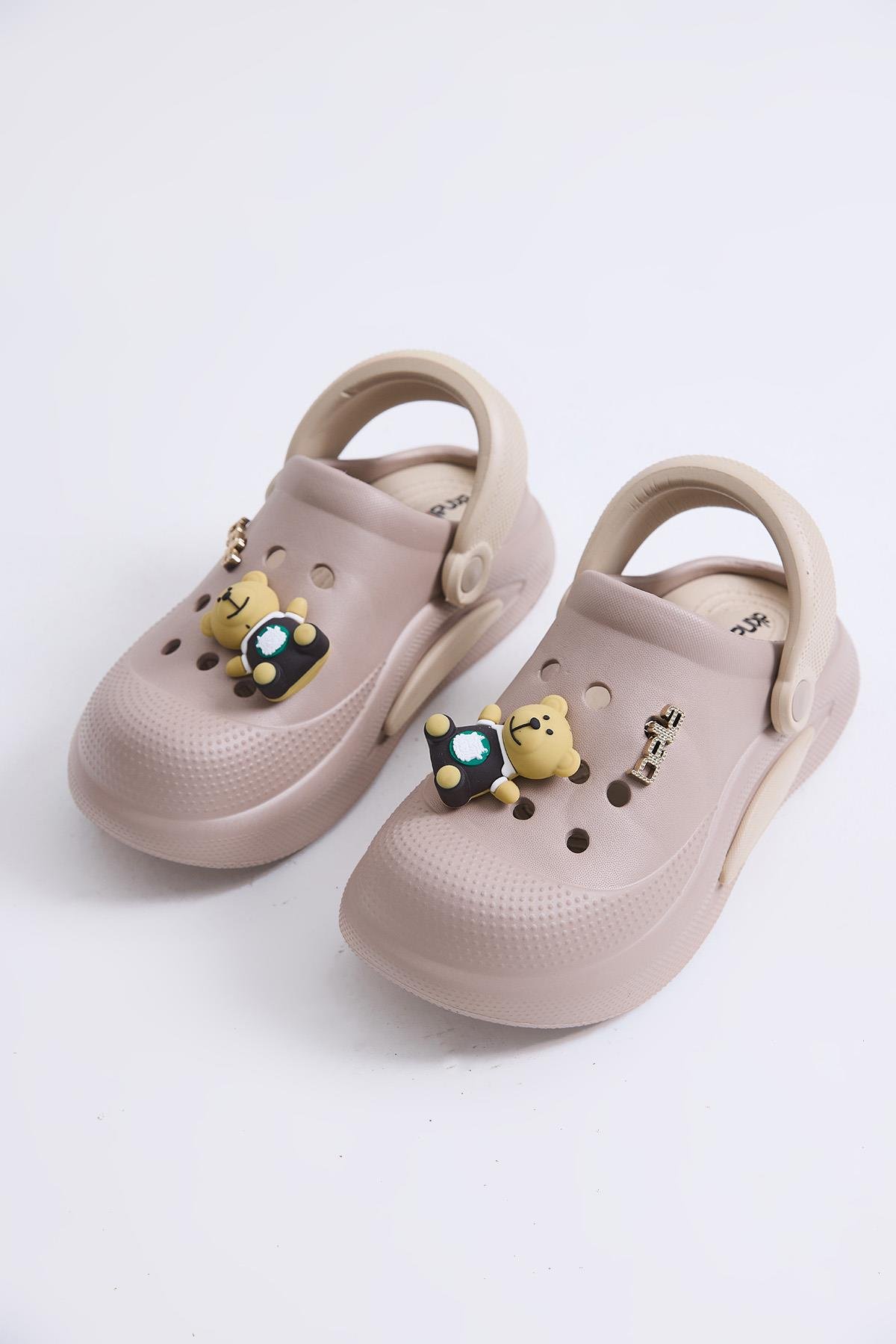 Yüksek Taban Aksesuarlı Crocs Terlik Vizon