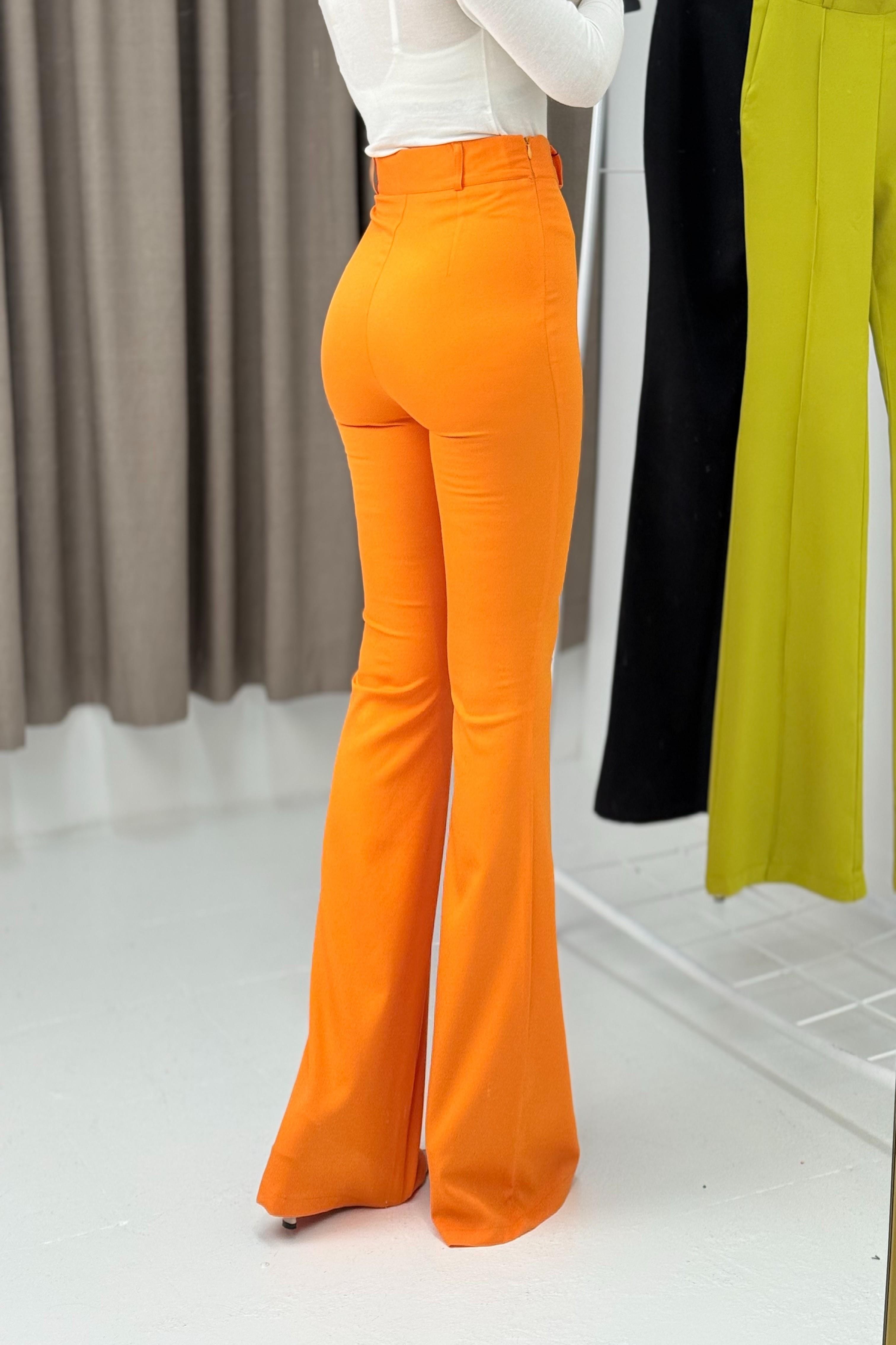 Yüksel Bel Çımalı  İspanyol Paça Pantolon  Turuncu