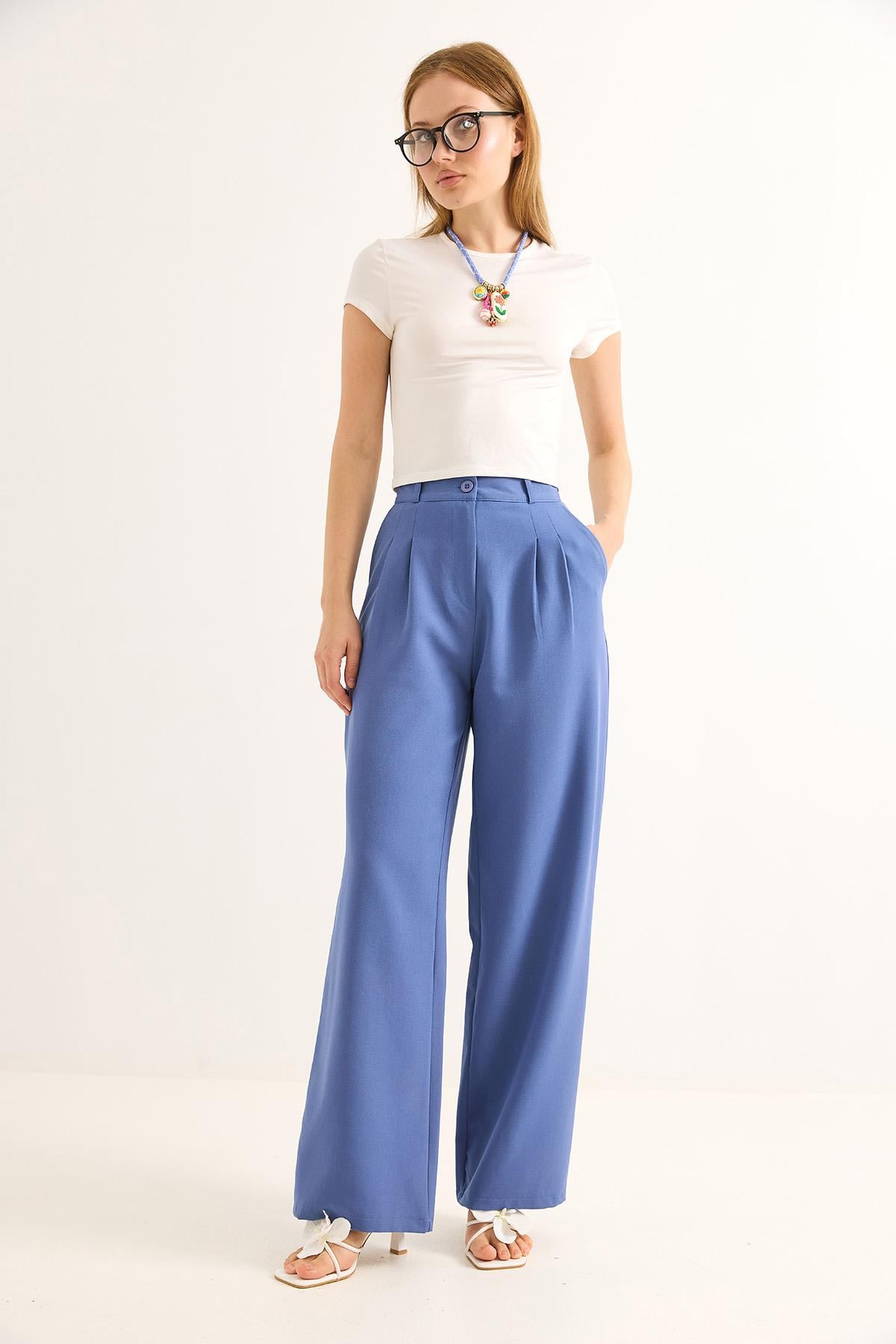 Yüksel Bel Geniş Paça Palazzo Pantolon Mavi (251087PNTXMVİ)
