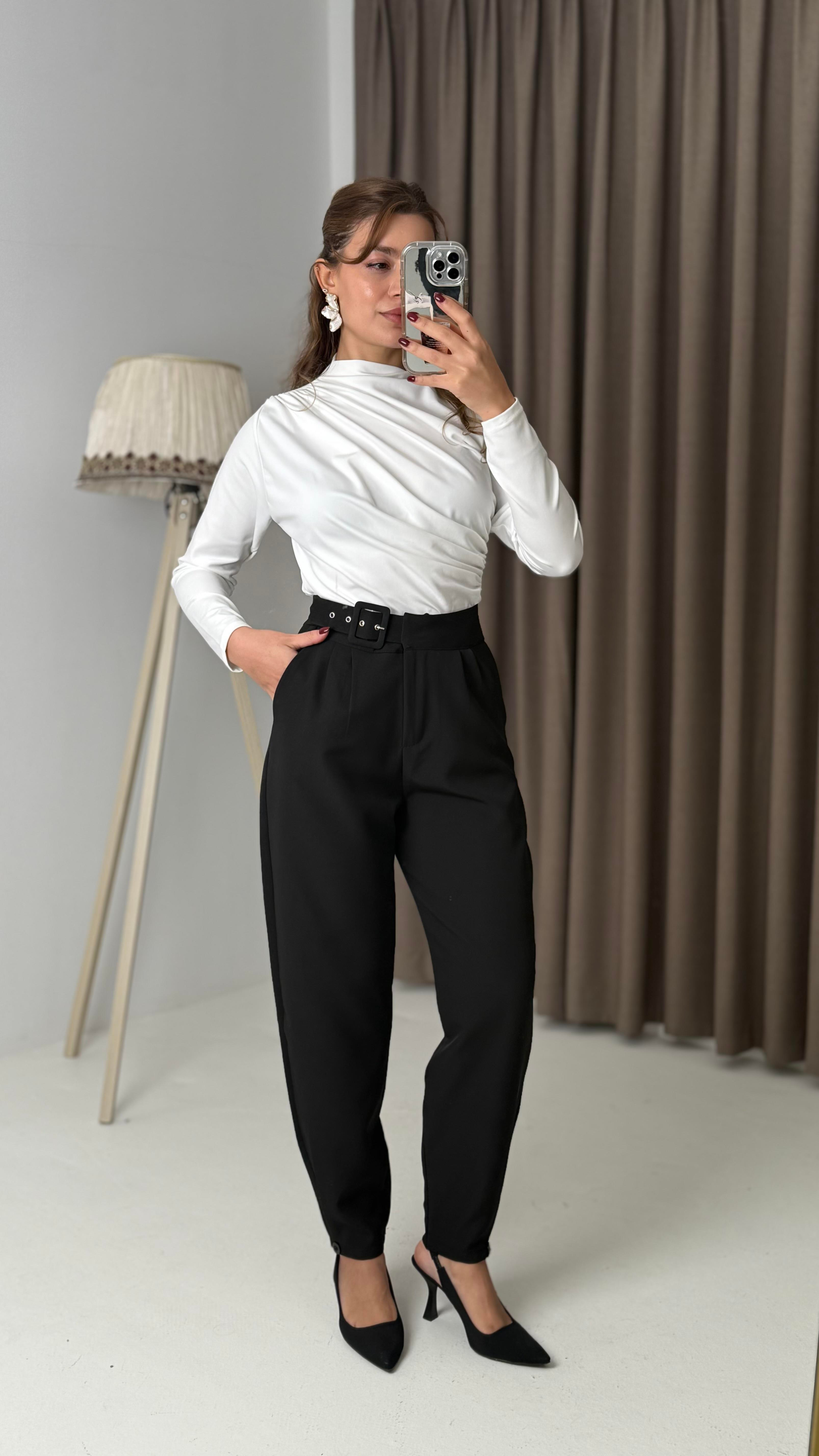 Yüksel BeLl Kemerli Kumaş Pantolon Siyah (250502PNTLXSYH)