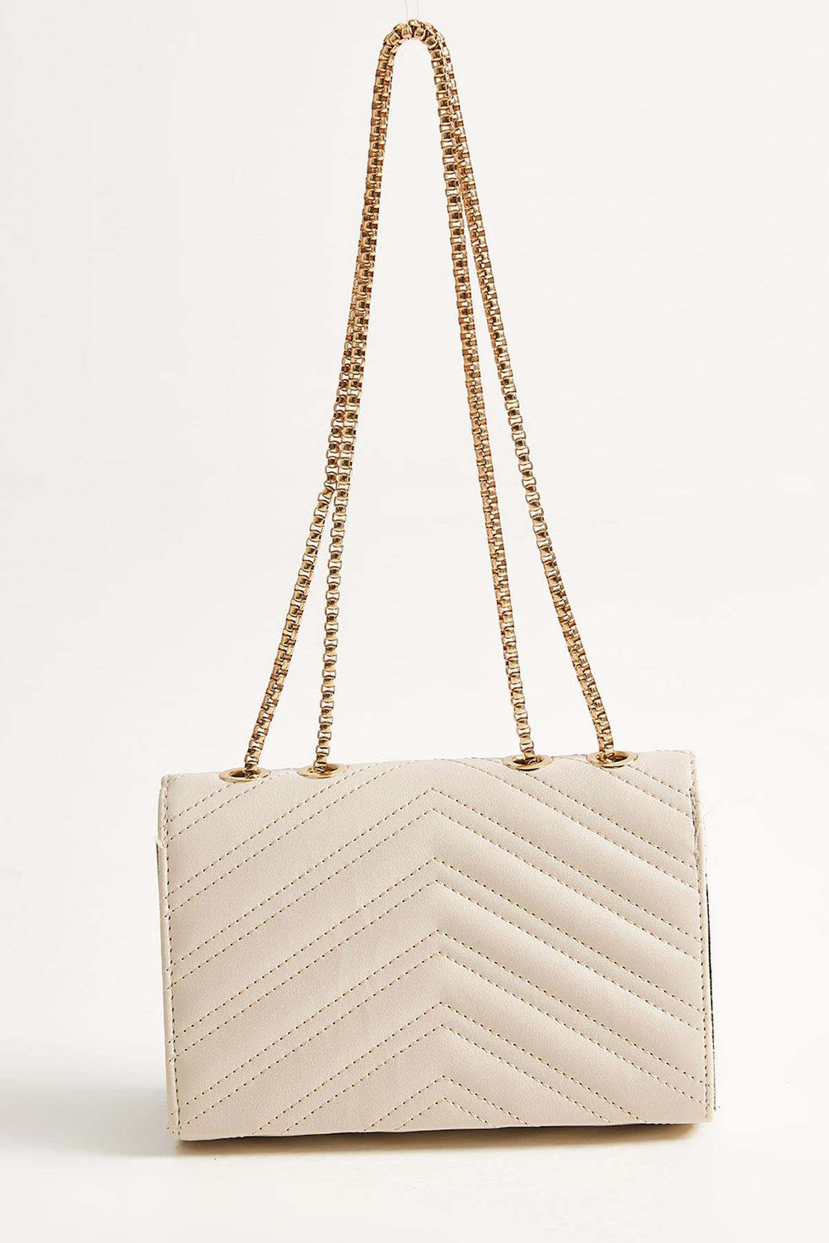 Zincir Askılı Kapaklı Kadın Çanta Bej
